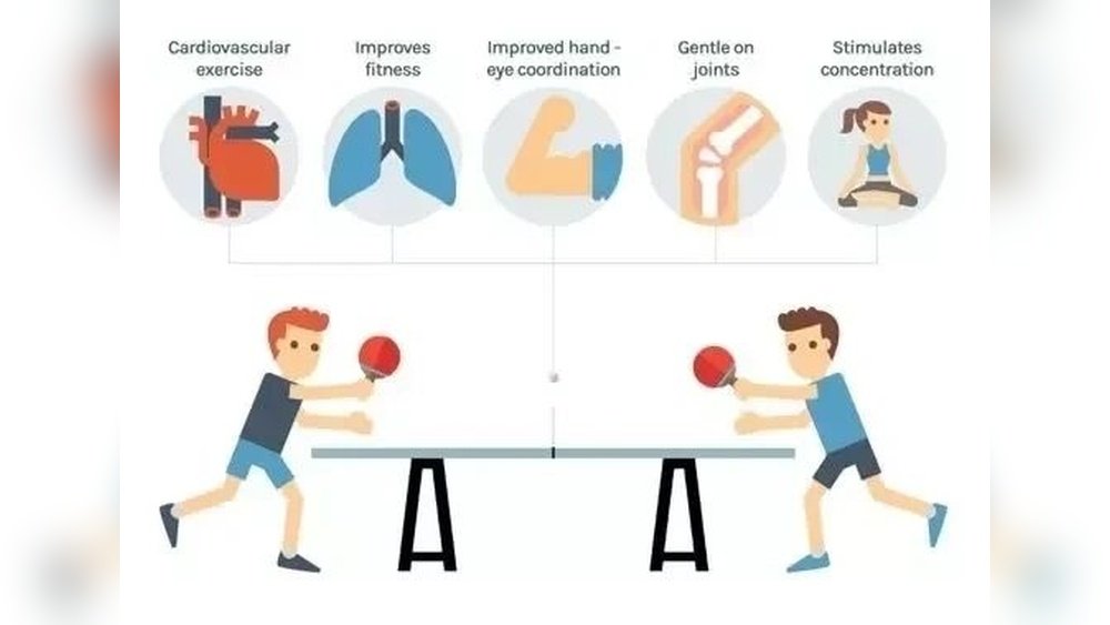 Table tennis improves cardiovascular health, strengthens muscles, and enhances flexibility.